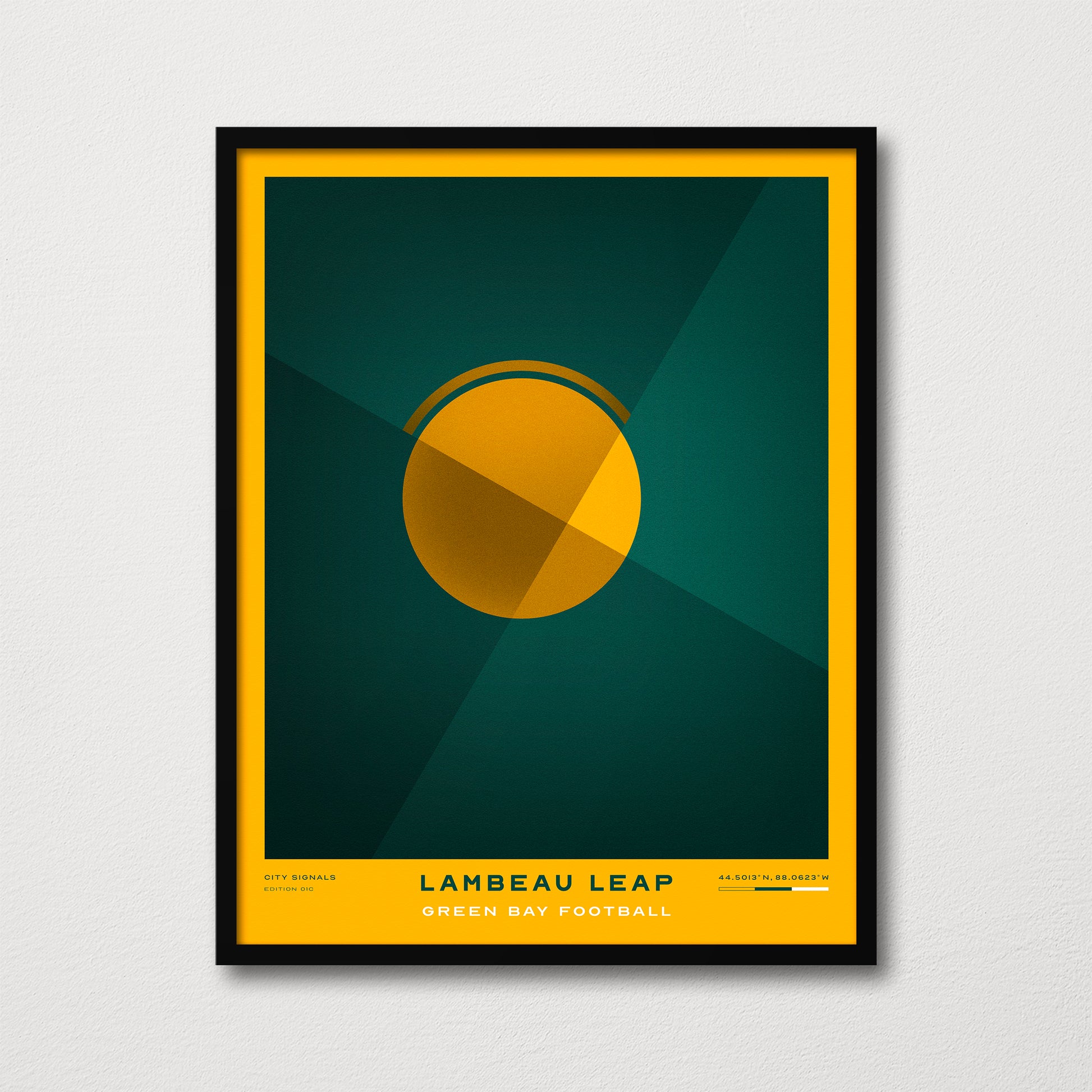 Lambeau Leap is a modern fine art print inspired by the culture, energy, and legacy of Green Bay football.